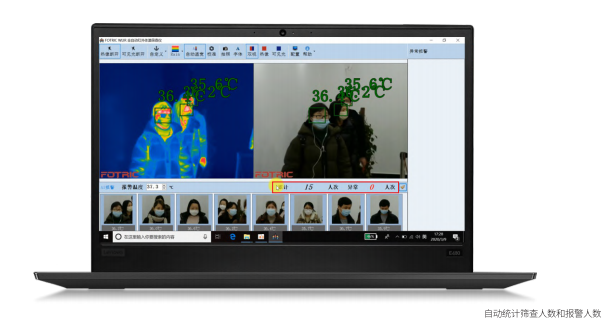 Fotric 692全自動紅外體溫篩查儀標配WLIR體溫篩查專用軟件,WLIR內(nèi)置人數(shù)統(tǒng)計和預覽功能,自動統(tǒng)計已篩查人員數(shù)量和篩查過程中報警的疑似發(fā)燒人員數(shù)量,實現(xiàn)疫情防控數(shù)據(jù)化。