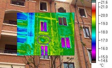 在建筑物經(jīng)受了熱負(fù)荷之后(例如在高溫、干燥的晴天中陽(yáng)光照射之后),對(duì)建筑物的外墻和屋頂進(jìn)行紅外熱像檢查。東面的墻壁可在下午進(jìn)行檢查,南面和西面的墻壁和屋頂可在日落后進(jìn)行檢查。在識(shí)別出外墻和屋頂中滲漏點(diǎn)之后,要在建筑物內(nèi)部進(jìn)行檢查,以進(jìn)一步確認(rèn)外部檢測(cè)結(jié)果。紅外熱像檢測(cè)還可指示出天花板和墻壁中由泄漏、水管斷裂等所帶來(lái)的部位。