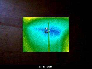 先將屋頂分為幾個(gè)區(qū)域,在現(xiàn)場(chǎng)操作只需兩名操作人員:一位在樓頂對(duì)待確認(rèn)區(qū)域澆熱水,還有一位在房間內(nèi)對(duì)滲漏部位進(jìn)行熱像跟蹤,當(dāng)滲漏區(qū)域被澆上熱水后,5分鐘內(nèi)在房間進(jìn)行熱像跟蹤的人員就可以發(fā)現(xiàn)至少0.7℃以上的溫升。