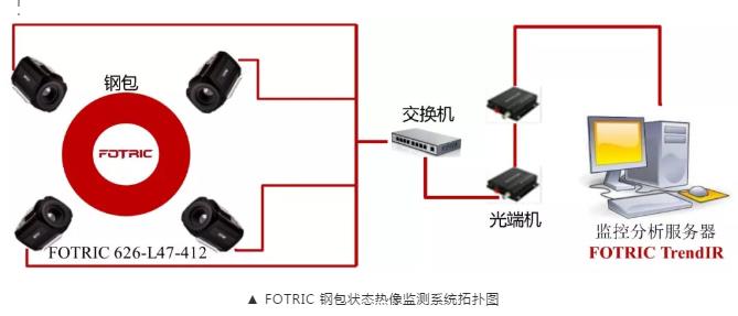 在線熱像儀組網(wǎng),長期監(jiān)測鋼包狀態(tài),省心省力。例如Fotric 626組網(wǎng)監(jiān)測,7×24 小時連續(xù)實時監(jiān)控,可以長期穩(wěn)定工作;業(yè)內(nèi)強大的智能監(jiān)控平臺,最高支持 16 路全輻射視頻接入;對于鋼包不同部位和區(qū)域,可設(shè)置不同的報警閾值進行即時報警。